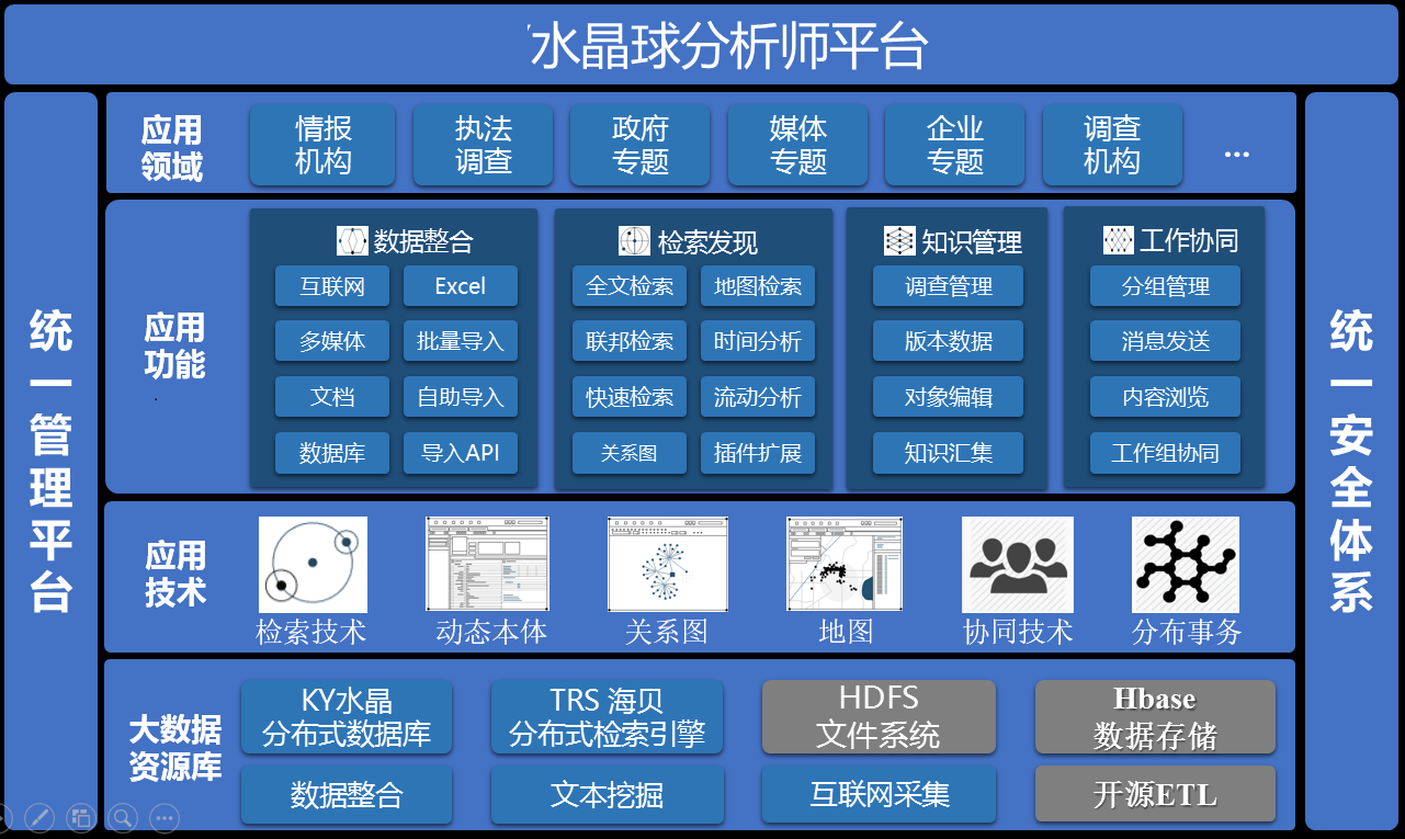 支持各類數(shù)據(jù)的融合,包括日志、電子表格、報(bào)表、郵件、文檔、圖像和視頻等結(jié)構(gòu)化數(shù)據(jù)、半結(jié)構(gòu)化數(shù)據(jù)和非結(jié)構(gòu)化數(shù)據(jù),為分析師的分析工作提供豐富的數(shù)據(jù)支撐。