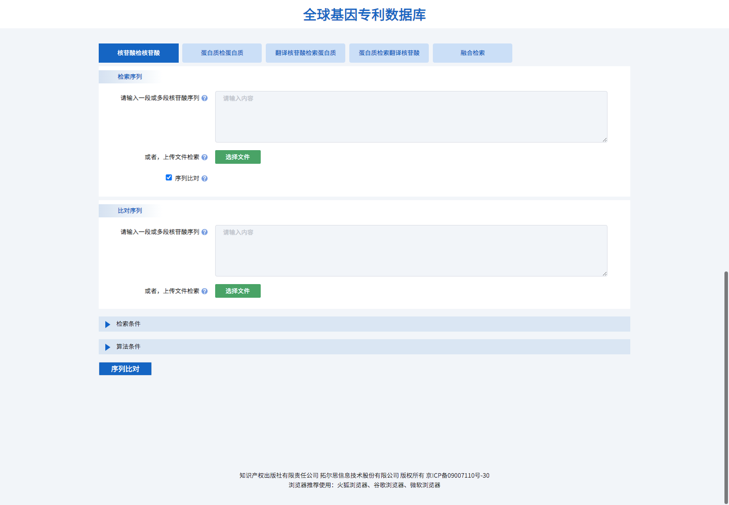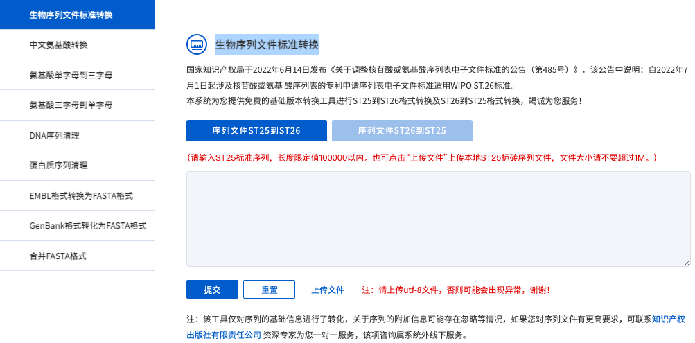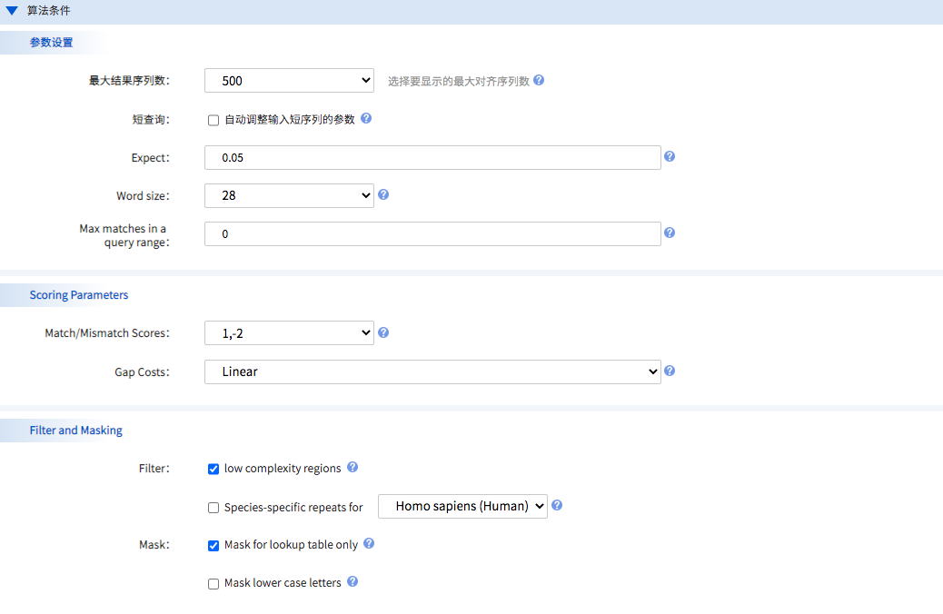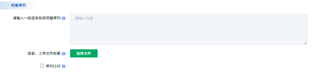 支持核苷酸序列檢索核苷酸數(shù)據(jù)庫、蛋白質(zhì)序列檢索蛋白質(zhì)數(shù)據(jù)庫、翻譯核苷酸檢索蛋白質(zhì)數(shù)據(jù)庫、蛋白質(zhì)序列檢索翻譯核苷酸數(shù)據(jù)庫,共五種檢索策略。用戶可以通過輸入一條或多條裸序列、fasta格式序列進(jìn)行檢索;也支持上傳序列文件(支持.txt和.FASTA格式文件)進(jìn)行檢索,目前最多可支持200條序列同時(shí)進(jìn)行檢索。