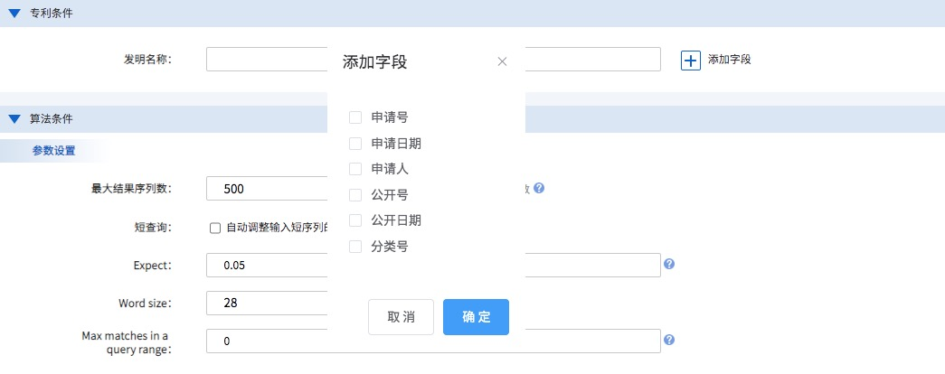 在基因?qū)@蛄袡z索時(shí)通過專利條件中的發(fā)明名稱、申請(qǐng)?zhí)?、申?qǐng)人等限定基因?qū)@麢z索范圍,