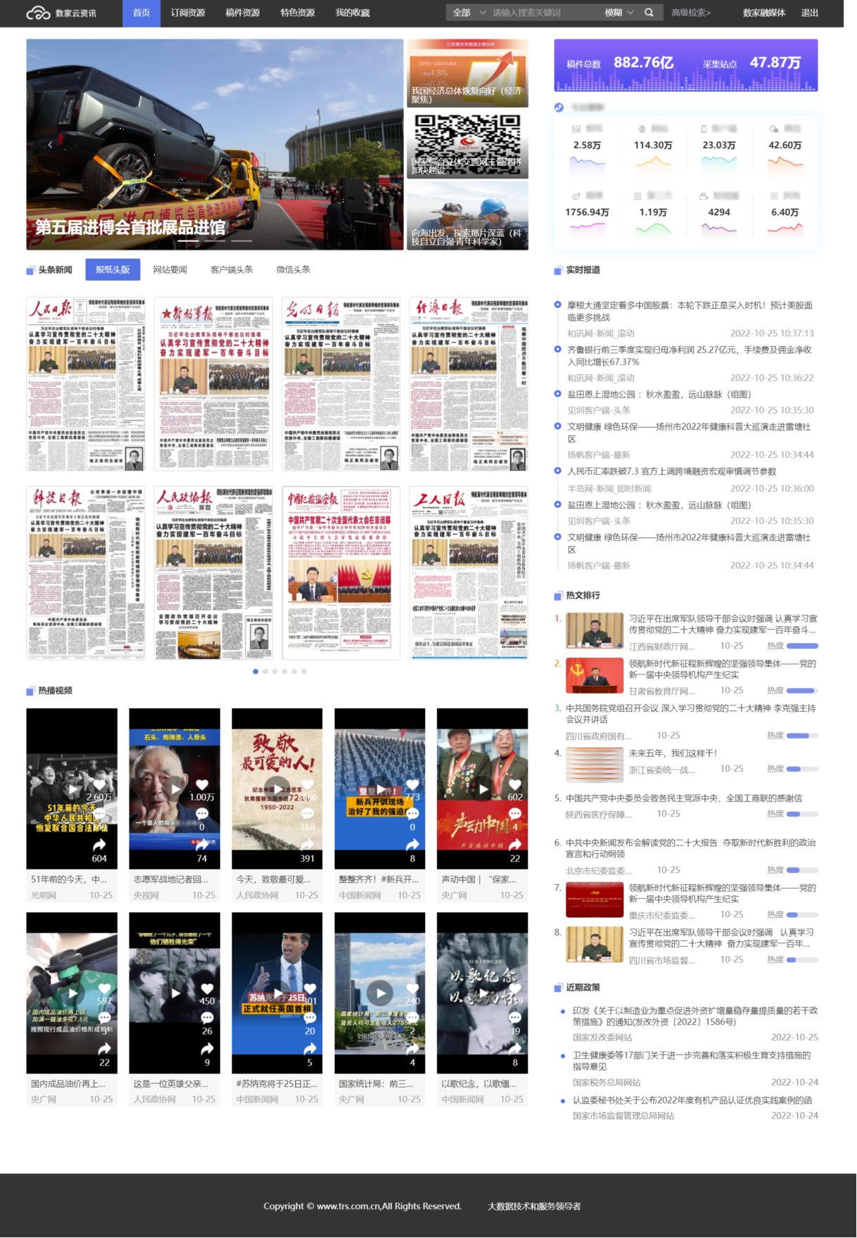 將數(shù)字報(bào)、網(wǎng)站、新聞客戶端、微信、微博、第三方平臺(tái)、短視頻平臺(tái)的內(nèi)容數(shù)據(jù)進(jìn)行結(jié)構(gòu)化分類整合,以“云服務(wù)”的方式滿足用戶對(duì)互聯(lián)網(wǎng)資訊內(nèi)容的數(shù)據(jù)需求,可實(shí)現(xiàn)內(nèi)容精細(xì)化檢索、個(gè)性化訂閱、基礎(chǔ)渠道數(shù)據(jù)供給、特色資源數(shù)據(jù)供給,可根據(jù)用戶實(shí)際數(shù)據(jù)需求分析自動(dòng)對(duì)接數(shù)據(jù)到用戶的應(yīng)用系統(tǒng)中。