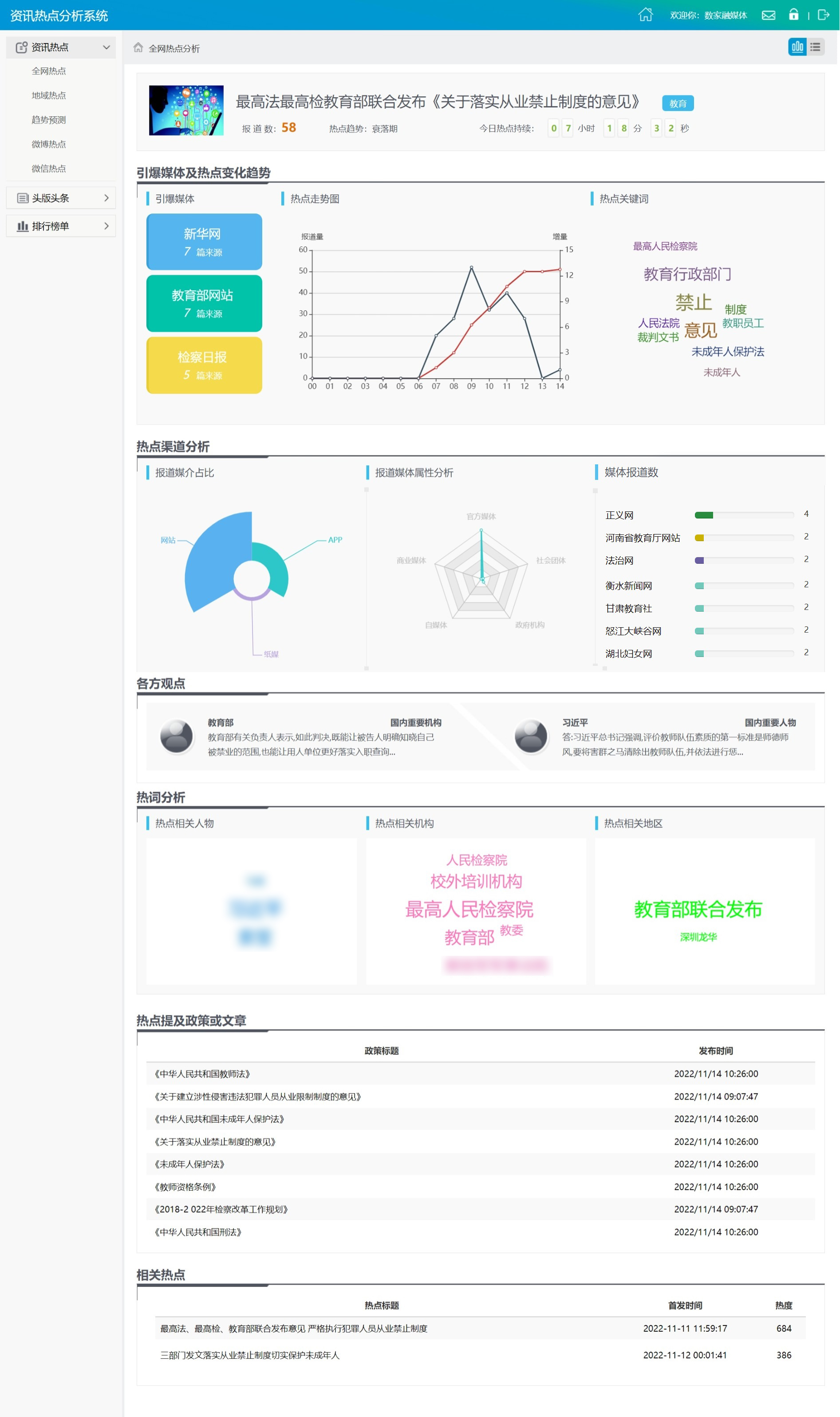 面向全網(wǎng)數(shù)據(jù),通過(guò)線索發(fā)現(xiàn)技術(shù)實(shí)時(shí)發(fā)現(xiàn)互聯(lián)網(wǎng)高價(jià)值內(nèi)容,并通過(guò)多維知識(shí)庫(kù)及智能語(yǔ)義技術(shù)進(jìn)行線索聚合、追蹤分析、發(fā)展趨勢(shì)預(yù)測(cè)。包含實(shí)時(shí)聚焦、網(wǎng)民關(guān)注、微博爆料、突發(fā)事件、自然災(zāi)害、近期政策、近期會(huì)議、歷史今天等功能模塊。