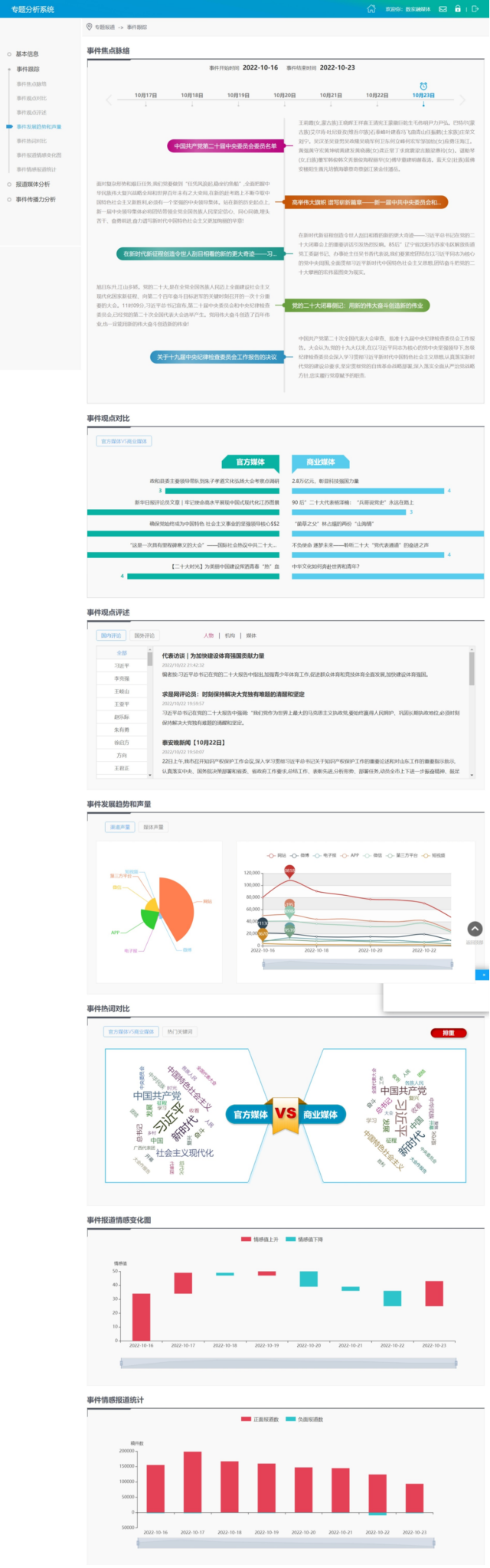 以事件或?qū)n}為中心,構(gòu)建專屬的事件專題分析服務(wù),包括事件的總覽、關(guān)鍵因子探索、話題漂移追蹤、事件溯源、傳播節(jié)點(diǎn)分析等一系列深度挖掘的內(nèi)容語(yǔ)義分析場(chǎng)景。
