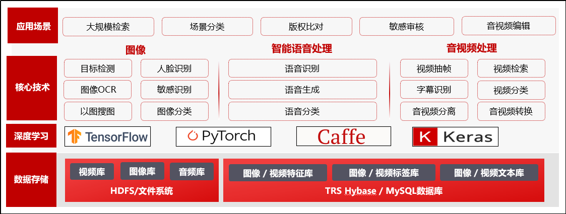 此功能基于深度學(xué)習(xí)模型,實現(xiàn)語音識別、語音生成及語音分類功能。支持語音中英文識別及生成。幫助用戶更方便地將音頻數(shù)據(jù)打標(biāo)以及將音頻轉(zhuǎn)換為文字,更全面地理解視頻中的信息。 在線接口:http://ai.trs.cn/DL-VRS/docs中智能語音處理部分
