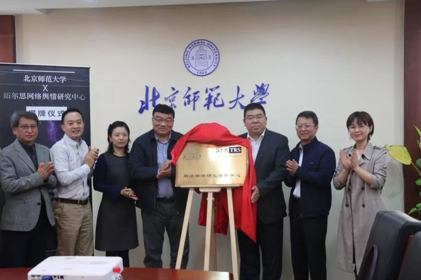 2019年10月24日,由北京師范大學(xué)新聞傳播學(xué)院和拓爾思信息技術(shù)股份有限公司主辦的“北師大—拓爾思網(wǎng)絡(luò)輿情研究中心成立儀式”在北京·京師大廈舉辦。北京師范大學(xué)新聞傳播學(xué)院直屬黨支部書記鄭偉、執(zhí)行院長(zhǎng)喻國(guó)明教授、副院長(zhǎng)張洪忠教授,拓爾思信息技術(shù)股份有限公司總裁施水才、網(wǎng)絡(luò)大數(shù)據(jù)應(yīng)用事業(yè)部總經(jīng)理?xiàng)罱ㄎ洹⑻旖蛲貭査紨?shù)據(jù)服務(wù)中心經(jīng)理顧麗麗等領(lǐng)導(dǎo)和嘉賓共同出席揭牌儀式。