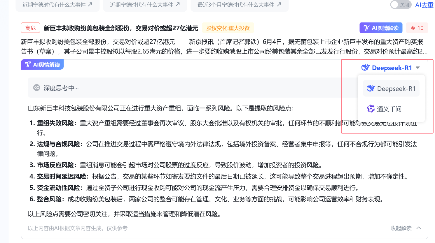 拓爾思五大數(shù)據(jù)資產(chǎn)平臺(tái):數(shù)家(中文媒體資訊)、網(wǎng)察(輿情)、數(shù)星(產(chǎn)業(yè)大腦與金融科技)、天目(開源情報(bào))、Global Insight(全球資訊洞察),已積累了超3000億條高商業(yè)價(jià)值的大數(shù)據(jù)資源。在此基礎(chǔ)上,拓爾思全面引入DeepSeek的技術(shù),進(jìn)一步優(yōu)化了SaaS服務(wù)。不僅通過MLA和MoE架構(gòu)降低大模型的應(yīng)用成本,實(shí)現(xiàn)精準(zhǔn)數(shù)據(jù)標(biāo)引和數(shù)據(jù)價(jià)值挖掘;也在為客戶提供的數(shù)據(jù)SaaS服務(wù)中植入自動(dòng)調(diào)度拓天Agent智能體,用戶可以自主選擇DeepSeek、Llama、Qwen等多種大模型,構(gòu)建拓爾思擁有的高質(zhì)量數(shù)據(jù)和大模型能力相結(jié)合的雙引擎,不僅進(jìn)一步增加了中文的可控生成,也為客戶提供更個(gè)性化、更高效的數(shù)據(jù)服務(wù)。
