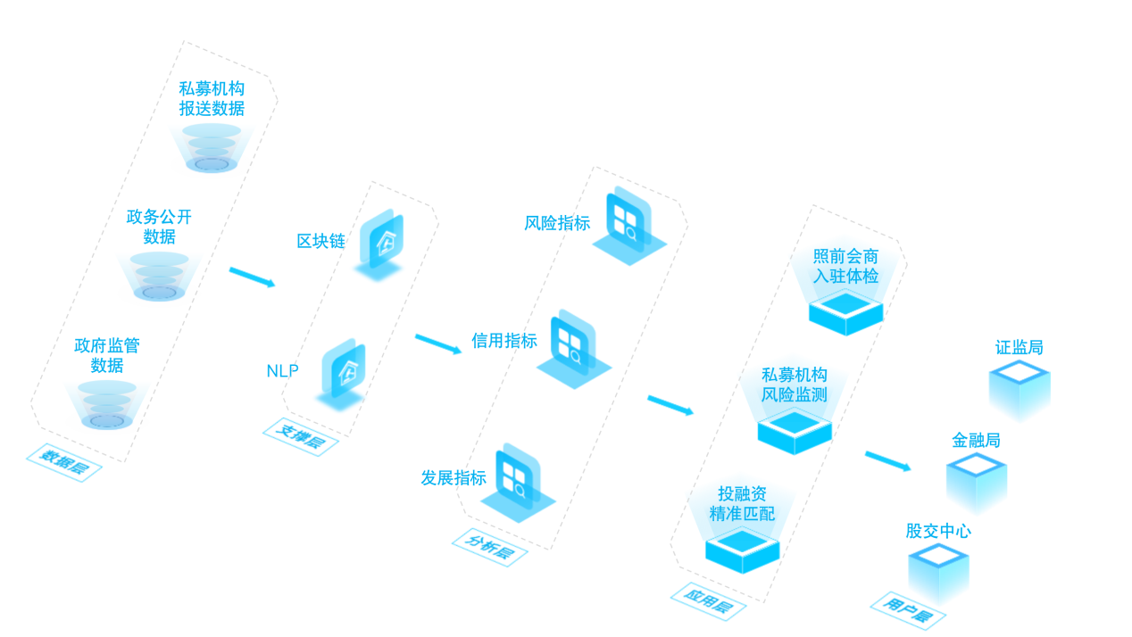 運(yùn)用大數(shù)據(jù)、人工智能、云計算等監(jiān)管科技手段,構(gòu)建私募基金管理人和基金產(chǎn)品“聯(lián)合審批—登記備案—風(fēng)險監(jiān)管—發(fā)展服務(wù)”全生命周期監(jiān)管和綜合服務(wù)體系,輔助監(jiān)管部門提升審批、登記、備案和監(jiān)管效率,及時發(fā)現(xiàn)和處置風(fēng)險,為區(qū)域優(yōu)質(zhì)企業(yè)和私募搭建智能匹配和撮合平臺,提升資源匹配效率,助力區(qū)域經(jīng)濟(jì)的高質(zhì)量發(fā)展。