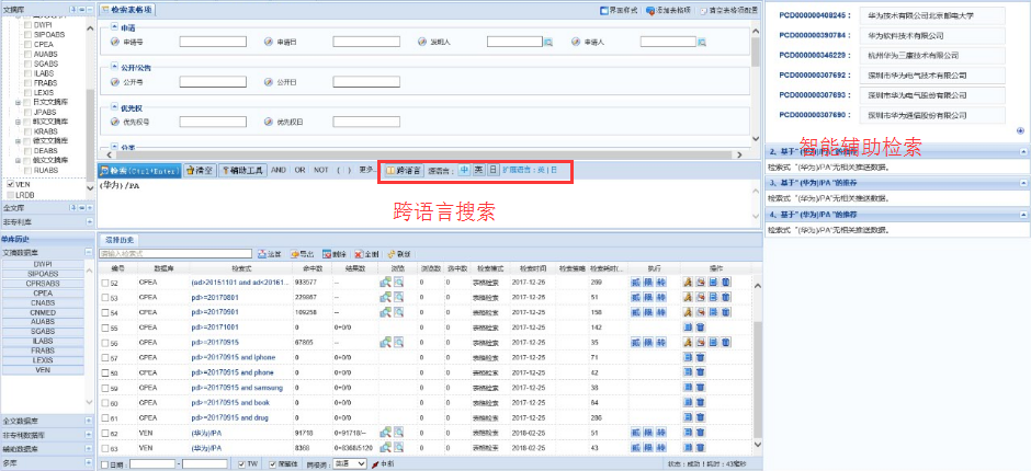 DI Inspiro提供了快捷檢索、表格檢索、號(hào)單檢索、可視化檢索、化學(xué)結(jié)構(gòu)檢索和生物序列檢索等多種檢索方式。此外,DI Inspiro還配備了功能強(qiáng)大的輔助查詢(xún)工具,可實(shí)現(xiàn)IPC、專(zhuān)利權(quán)人、同義詞、國(guó)別代碼、省市代碼、號(hào)碼等字段的擴(kuò)展檢索。用戶可以對(duì)檢索結(jié)果進(jìn)行導(dǎo)出、收藏、統(tǒng)計(jì)篩選和在線分析,還可以對(duì)檢索策略和結(jié)果在線自建數(shù)據(jù)庫(kù)導(dǎo)航樹(shù),實(shí)現(xiàn)保存和預(yù)警。