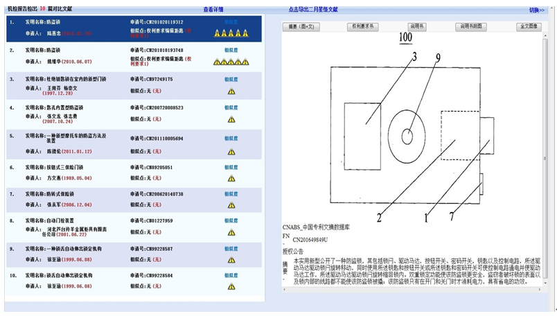 目前,已經(jīng)處理了近大幾百萬(wàn)件實(shí)用新型申請(qǐng)。其中有10%左右的申請(qǐng)被判定為存在高相似度(四五星)文獻(xiàn),高相似度文獻(xiàn)識(shí)別的準(zhǔn)確率基本是100%。